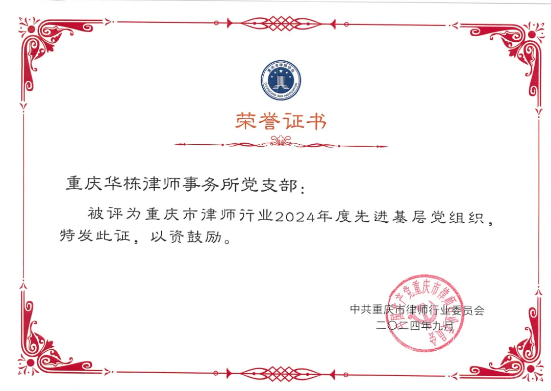 重庆华栋律师事务所党支部荣获“先进基层党组织”称号,实现了该荣誉的蝉联。蝉联这一荣誉不仅是对华栋律所党支部工作的充分肯定,更是对全体党员律师不忘初心、牢记使命,以党建引领法治前行的生动诠释。